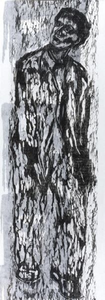 Oil on canvas with woodcut