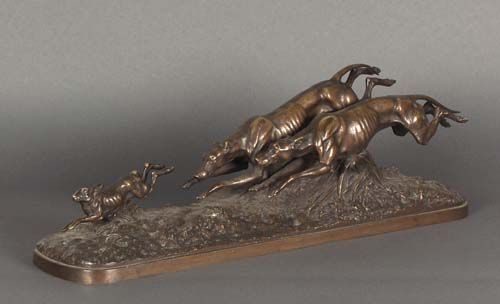 Zwei Jagdhunde verfolgen einen Hasen,