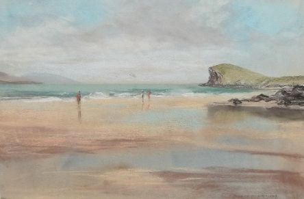 Still life on figures on the beach at low tide