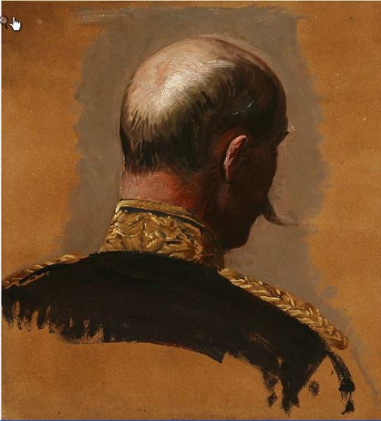 | Portrait study of King George 1. of Greece, seen from behind. | |