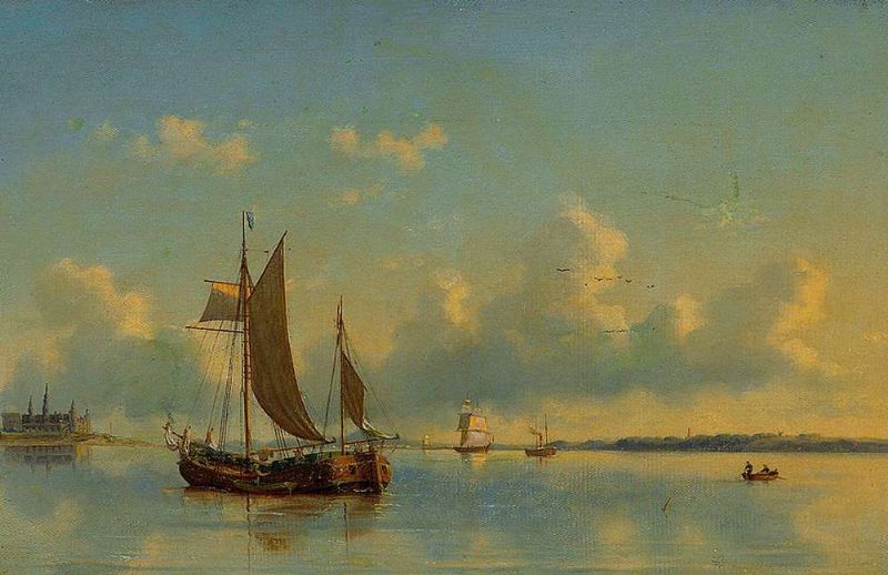 | Blick auf die Bucht von Schloss Charlottenburg mit Segelschiffen auf ruhigem Gewässer an einem Sommertag | |