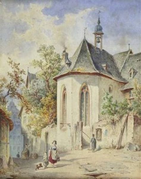 Figurale Kleinstadtszene mit gotischer Kapelle