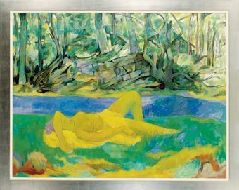 Nude by a stream