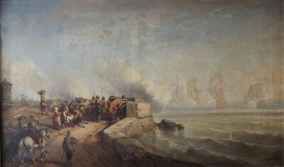 | Tir de canons sur des vaisseaux au large | |
