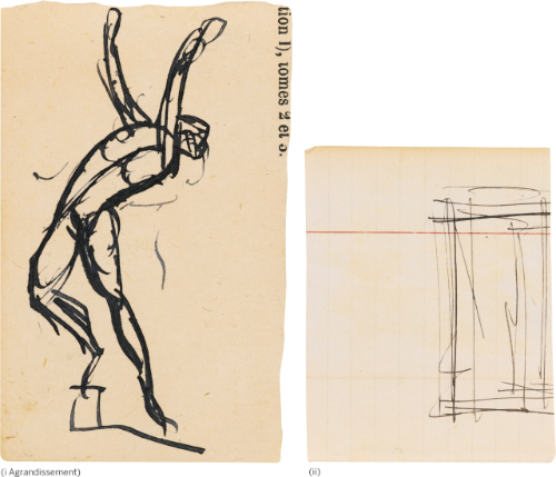 | (I) FIGURE CAMBRÉE VERS LA DROITE, UN PIED SUR UN SOCLE (II) ETUDE D'ÉLÉMENT D'ARCHITECTURE | |