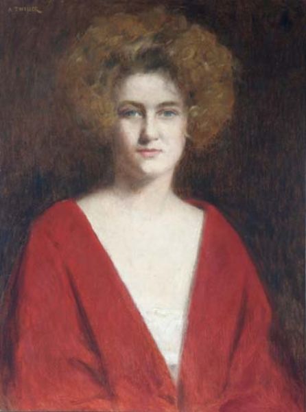 Halbbildnis einer Frau mit rotem Umhang