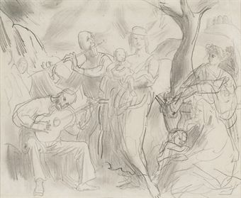 | Composition study with donkey and figures and musicians | |
