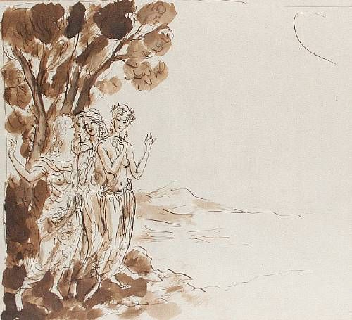 Four classical figures in a landscape