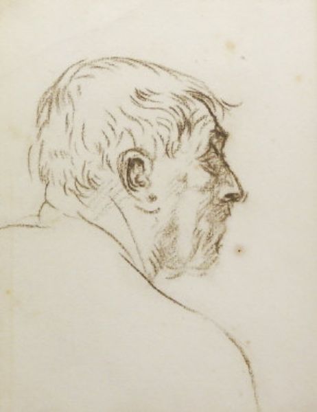 Portrait of a man, head and shoulders turned to the right