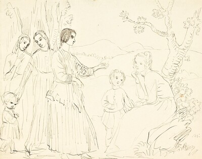 WOMAN AND CHILDREN AMONG TREES