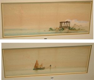 | A calm evening on the lagoon, Venice and Greek Island temple | |