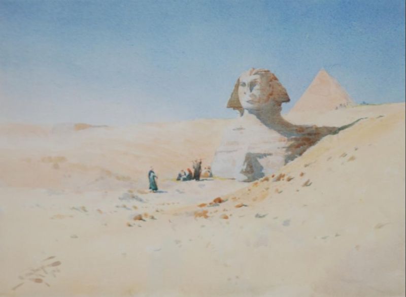 | Arab figures at the foot of the Sphinx at Giza pyramid beyond | |