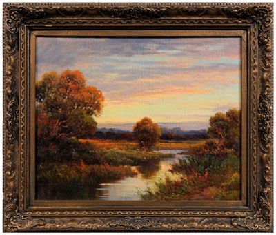 | Landscape with marsh at dusk, titled verso on stretcher "Evening Lights" | |