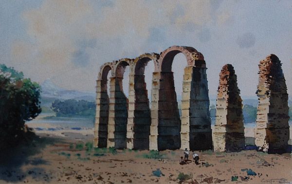 Paesaggio con figure e resti di acquedotto