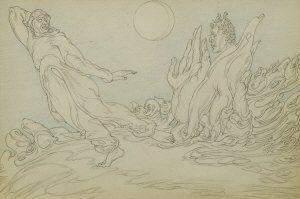 Two Figures with Moon from 'Satyros Dux' 1945; original artwork for illustration