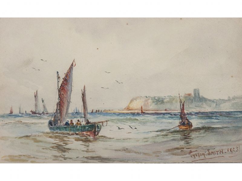 FISHING BOATS OFF WHITBY, A PAIR OF WATERCOLOURS