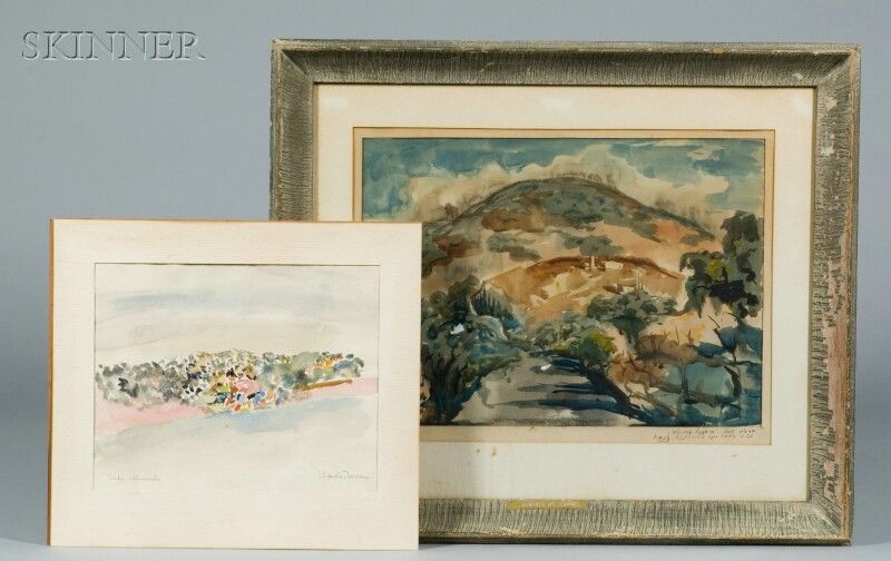 Two Watercolors: Mt. Carmel and Lake Alhumbarah