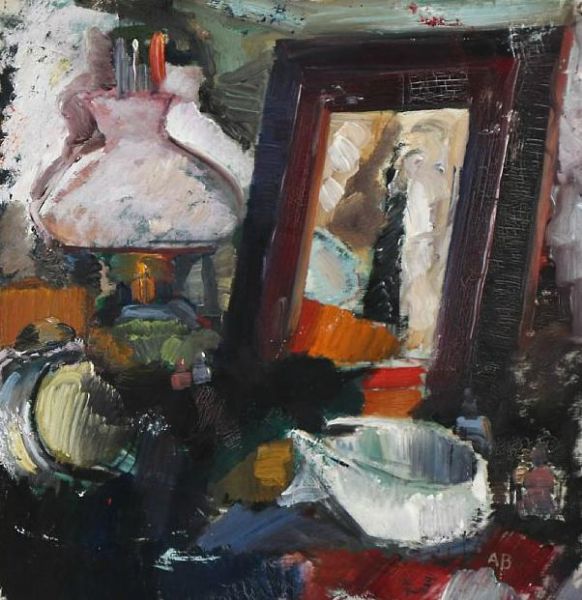 Still life with oil lamp and mirror