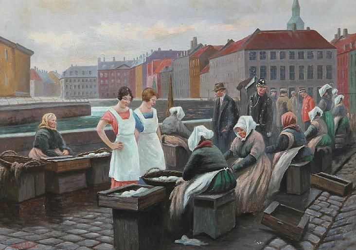 Fishermens' wife selling fish at Gl. Strand