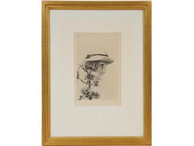 Flicka with hatt and pelargonia