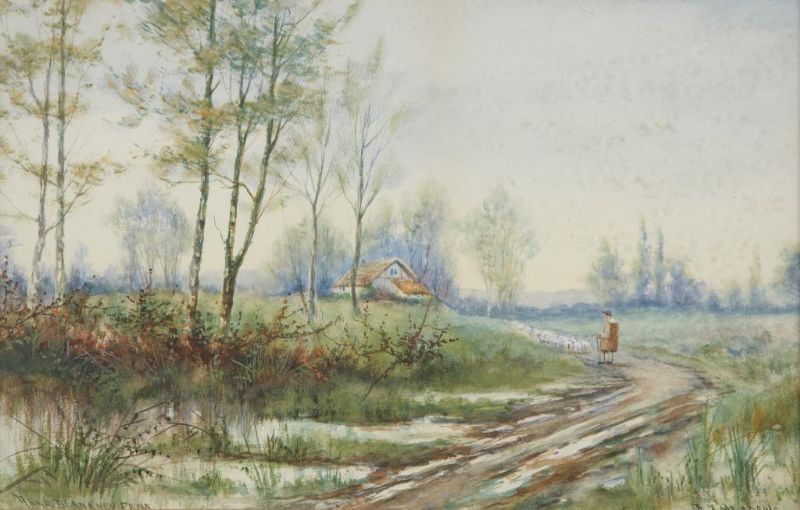 NEAR BLANKNEVS FENS, sheep droving on a country lane