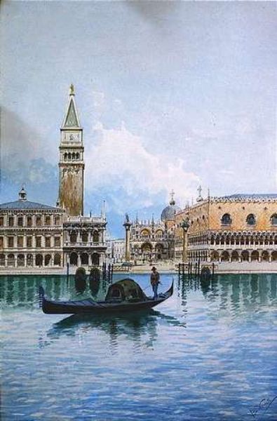 | Blick vom Canal Grande in Venedig auf die Piazzetta, San Marco, den Dogenpalast und die Libreria von Sansovino | |