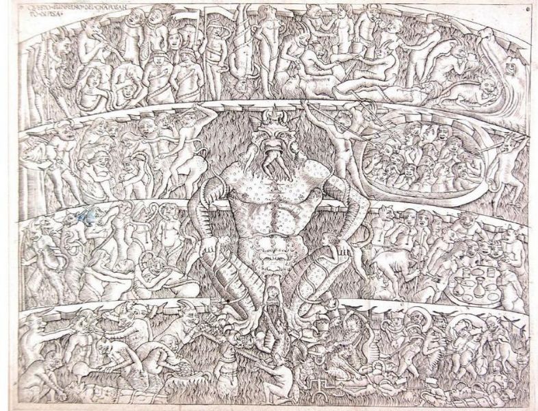 Lucifer with three faces devouring humans