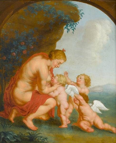Venus with putti, in a painted arch