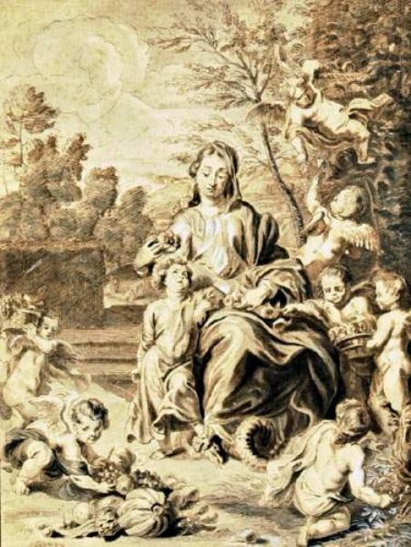 | La Vierge et l'Enfant Jésus terrassant le mal, entourés de Putti | |