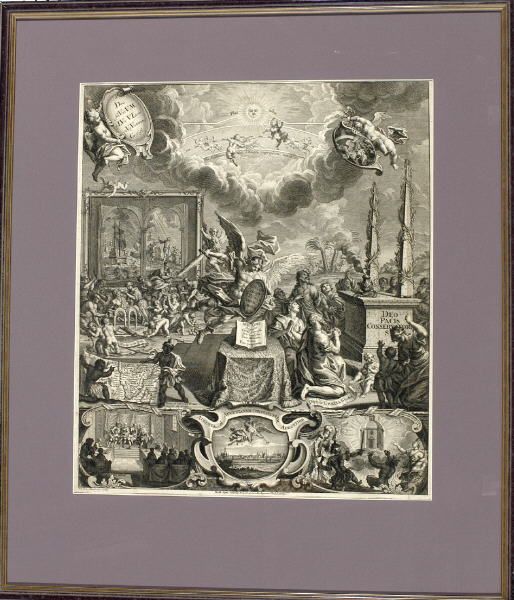 Gedenkblatt zum Augsburger Confessions-Jubiläum mit Stadtansicht