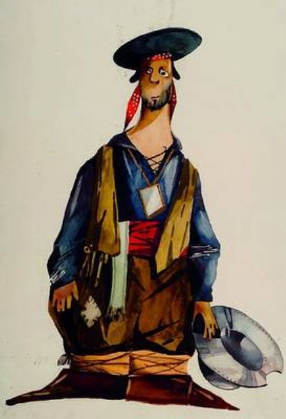 Studium an der dortigen Akademie, hier: Illustration aus Don Quichotte, hier: Der Dorffriseur