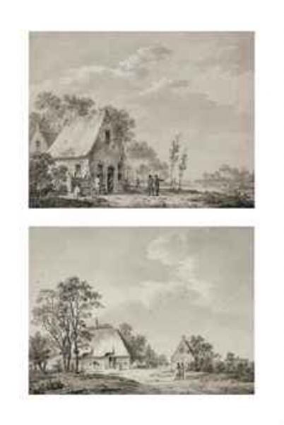| A summer landscape with a cottage and figures near a stream; and A landscape with a village and villagers | |