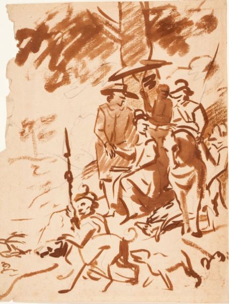 Graphite brown ink, and wash on buff paper