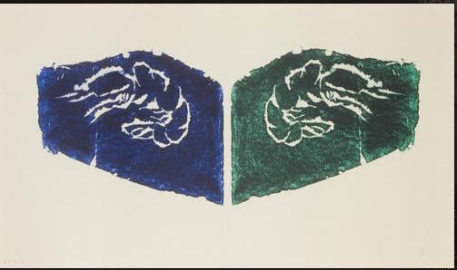 Woodcut in blue and green