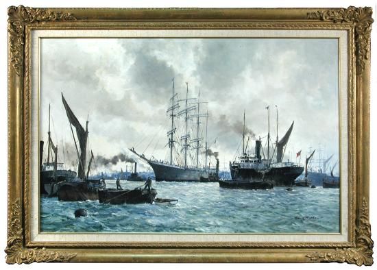 | The Rain Squall - a 4-masted Frenchman being hauled off her berth amid the bustle of river traffic | |