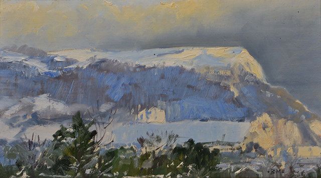 View of Seaton, Devon in winter, looking out from the artist's studio