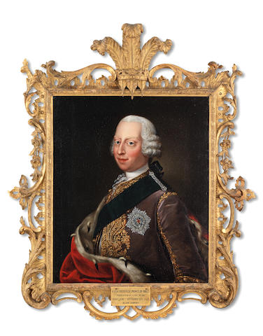 | Portrait of Frederick, Prince of Wales, half-length, in a mauve coat with the sash of the Order of the Garter and an ermine-line | |