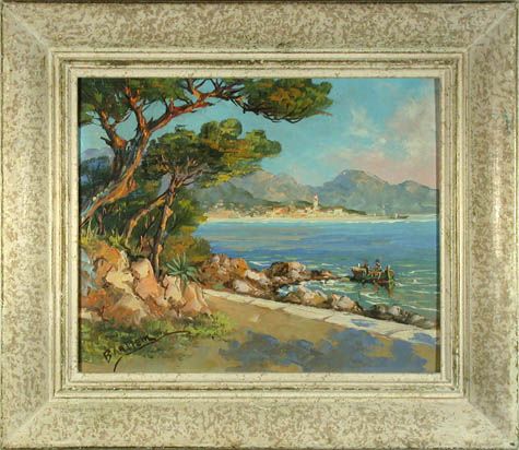 Blick auf eine weite Bucht an einem italienischen See in den Alpen