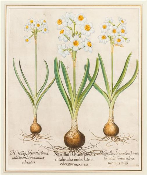 | I. Narcissus Polyanthos Orientalis calice medio luteus odoratus maximus II. Narcissus Polyanthos Orientalis medio luteus odoratu | |
