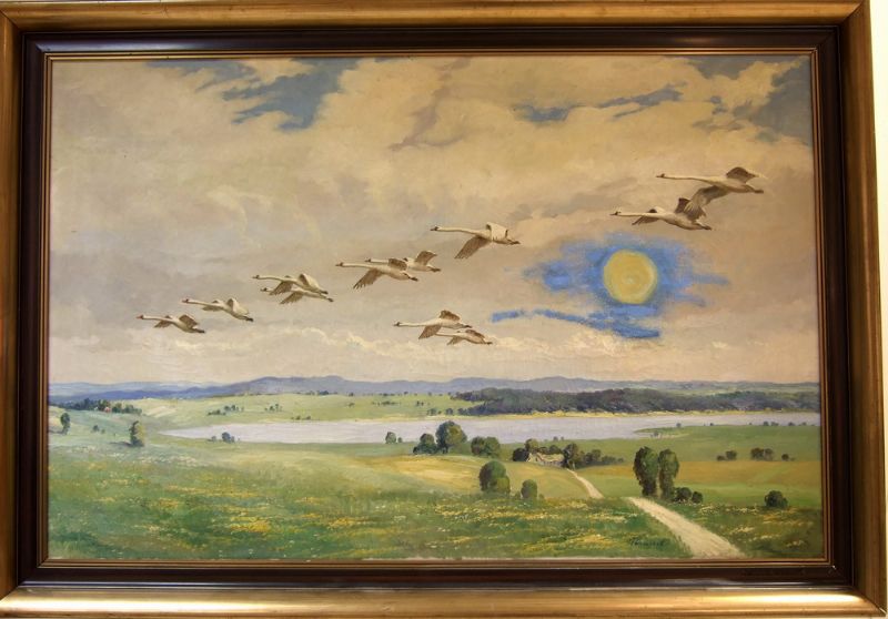 Sommarlandskap med flygande svanor
