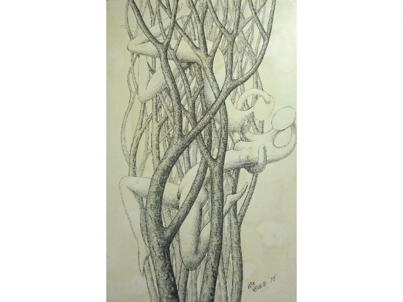 Study of male and female entwined with trees
