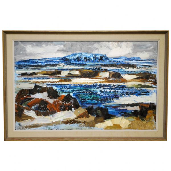 Motiv av hav och klippor.