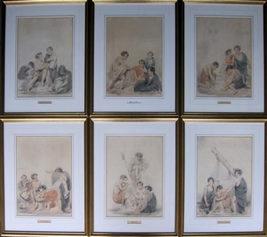 A group of watercolours illustrating the arts