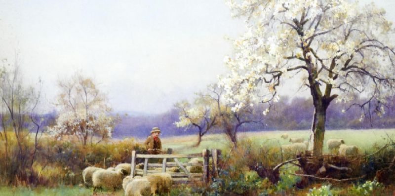 Feeding the lambs, and shepherd by a gate, a pair