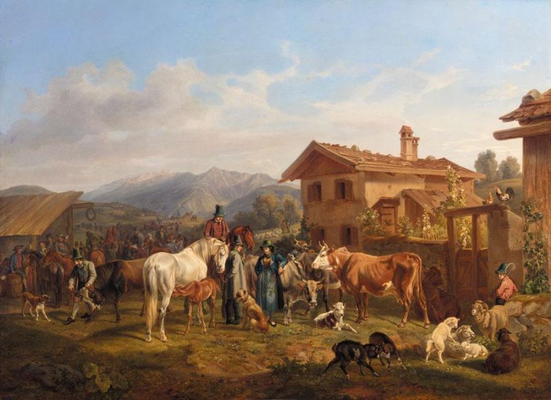 | EIN VIEHMARKT IM BAYRISCHEN GEBIRGE (COW MARKET IN THE BAVARIAN ALPS) | |