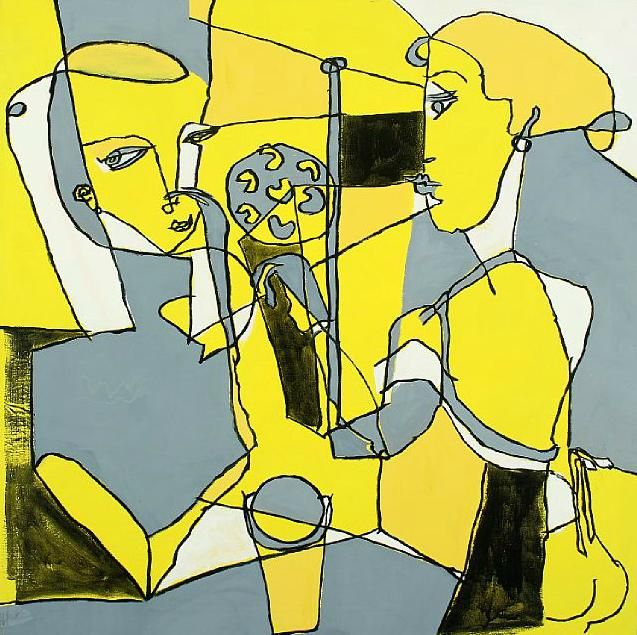 Abstraction with two women in yellow and gray