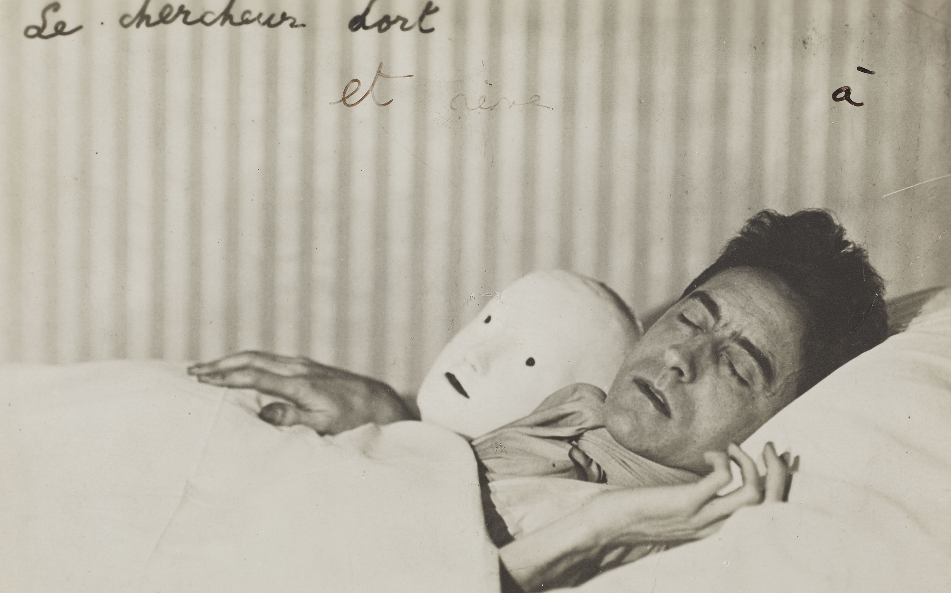 Jean Cocteau couché avec le masque d'Antigone