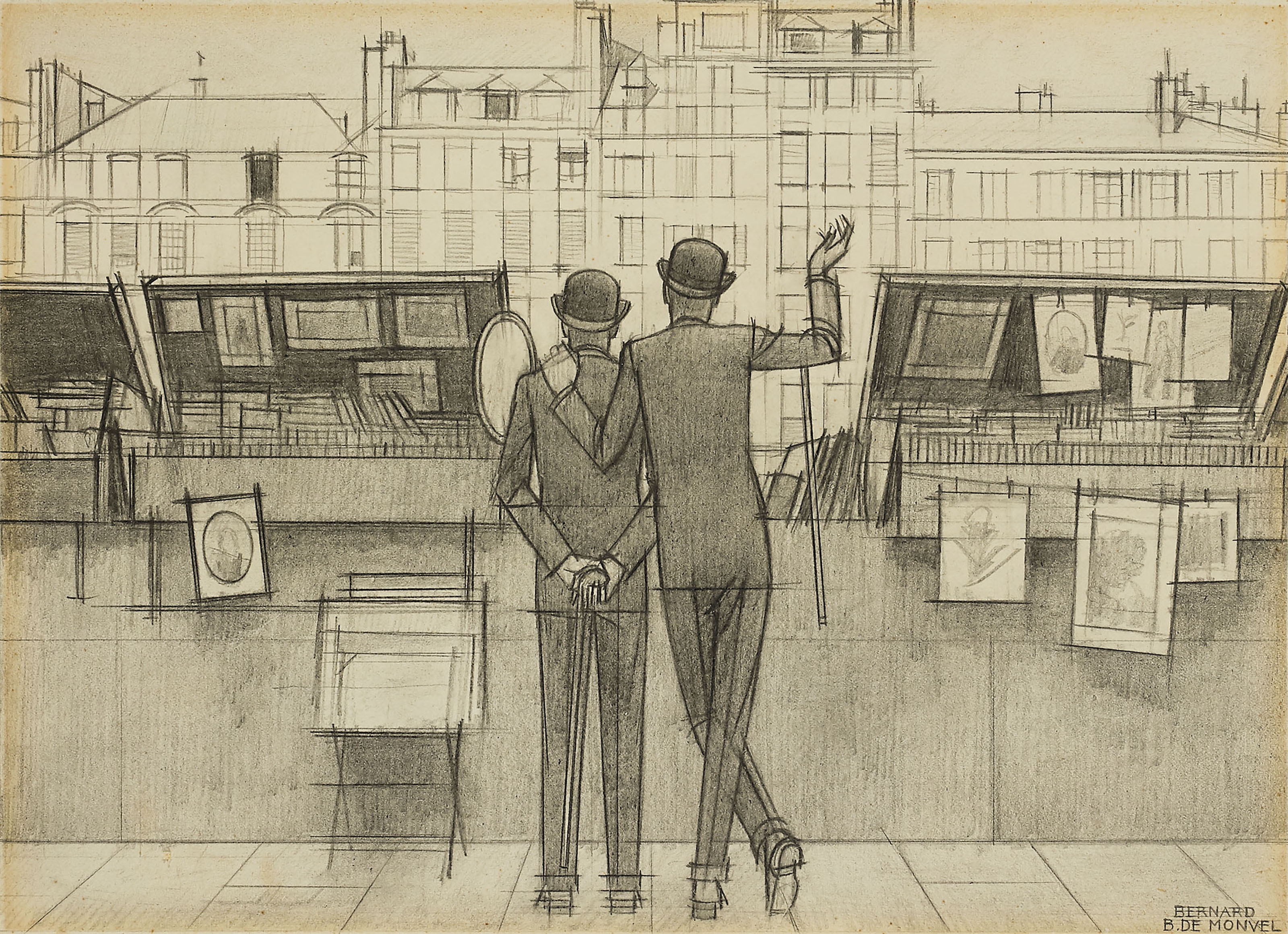 | Bernard et Roger Boutet de Monvel devant les bouquinistes à Paris | |