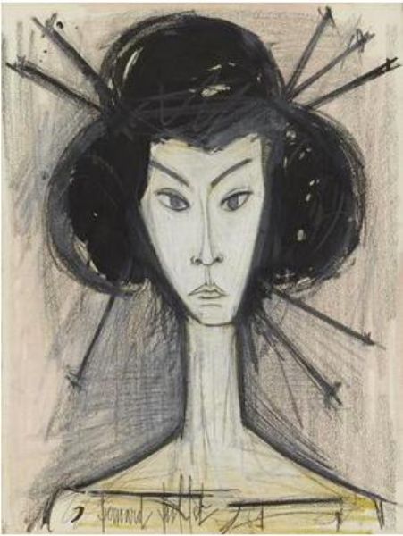Brush and black ink, colored chalk and pencil on paper laid on board