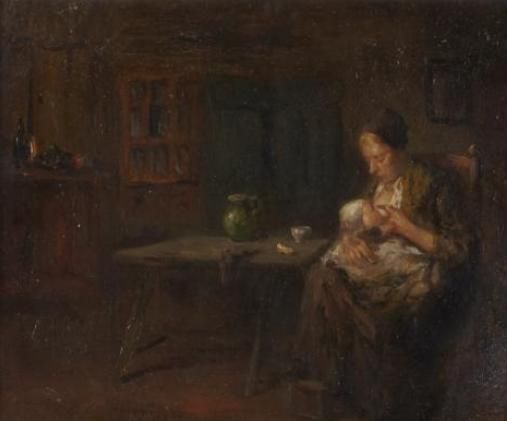 INTERIOR WITH MOTHER FEEDING HER BABY